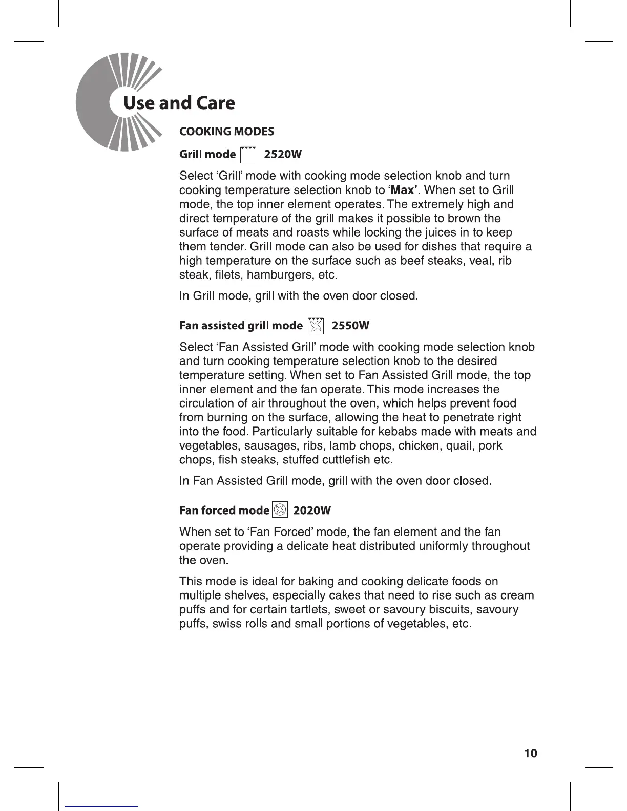 BELLISSIMO TB60FDTSS-5 - Cooking Modes Explained