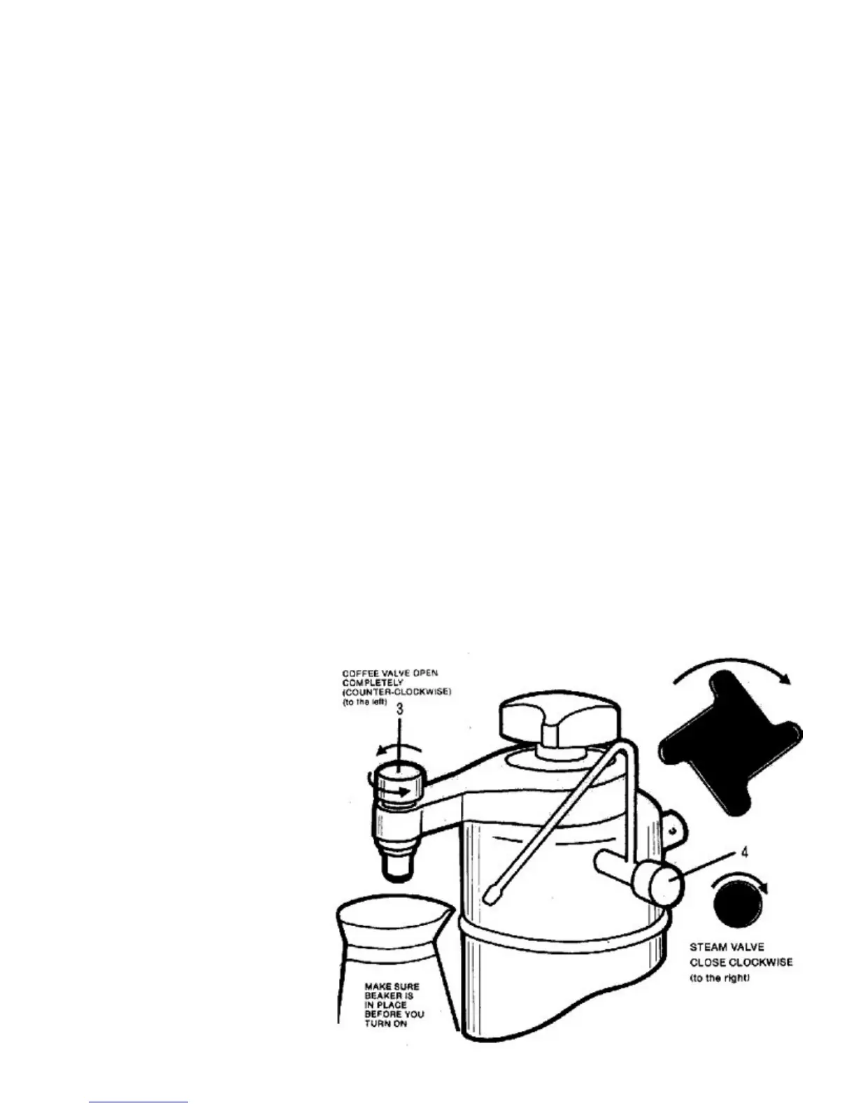 sputtering thin stream mixed with steam; then close the coffee valve. If you wish a stronger brew, turn off the coffee valve