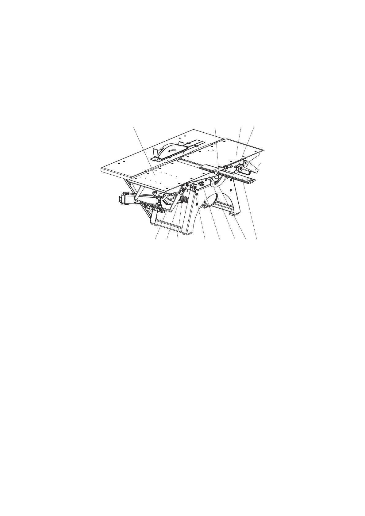 The loading 2 and outfeed 3 tables should be installed at the level of the slicing blade cut (Fig. O).