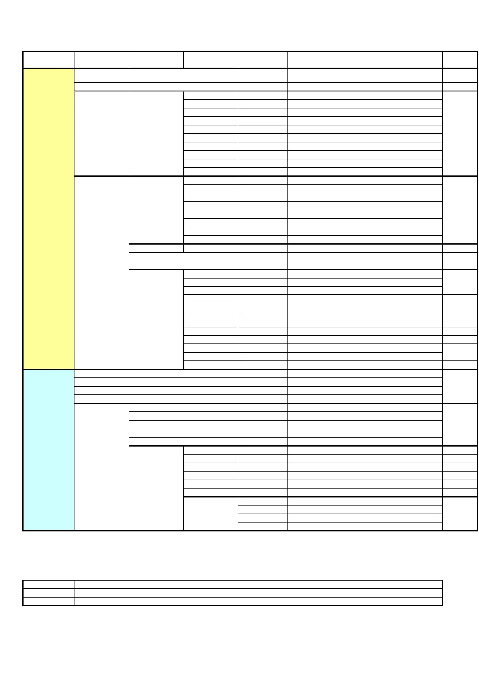 1)Overall default setting (Figures in the right column show values to