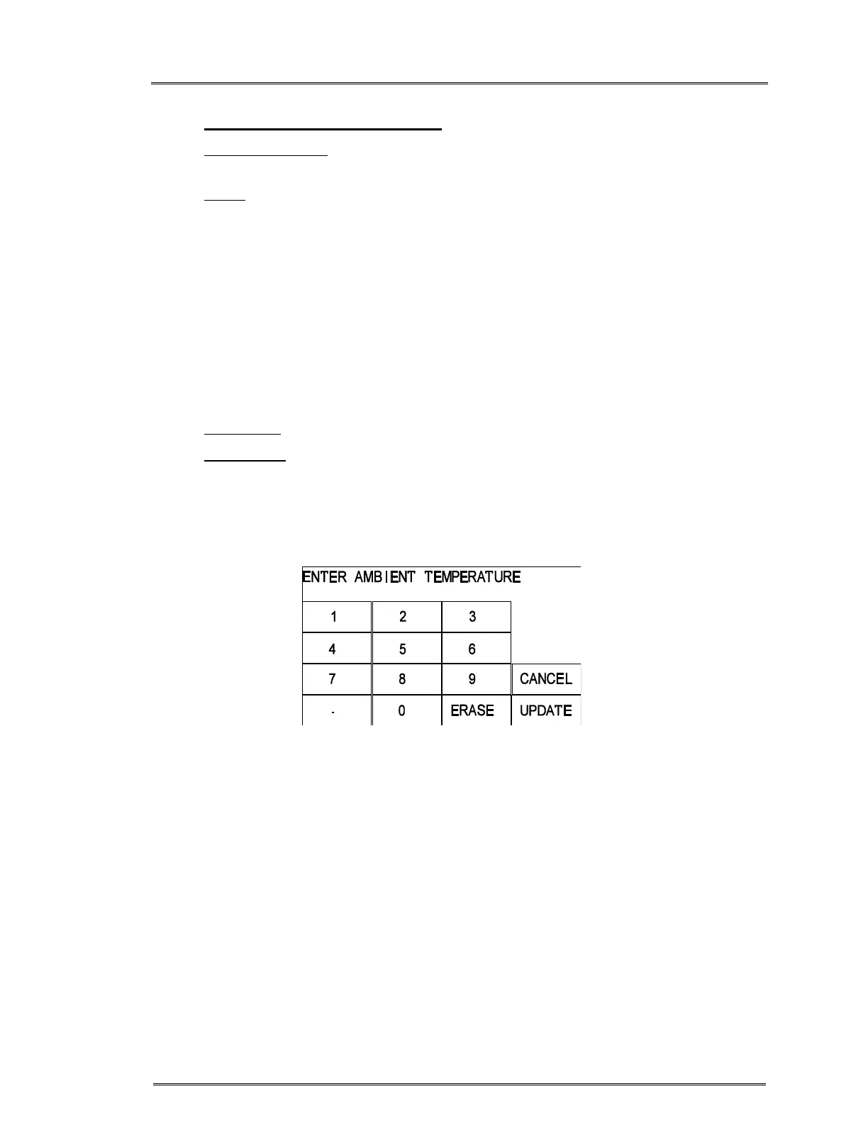 Screen to enter ambient temperature in TEMP CAL.