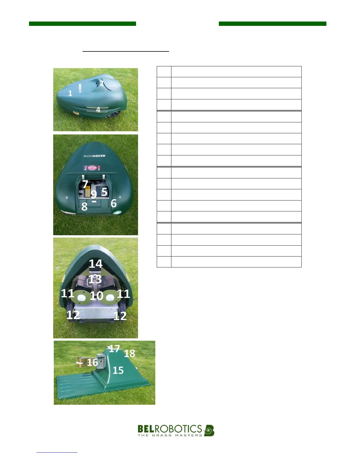 Belrobotics PARCMOW - Diagram of Greenmow Parts