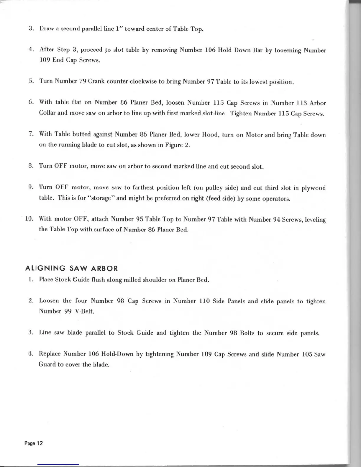 Belsaw 910 - Aligning the Saw Arbor; Saw Arbor Alignment Procedure