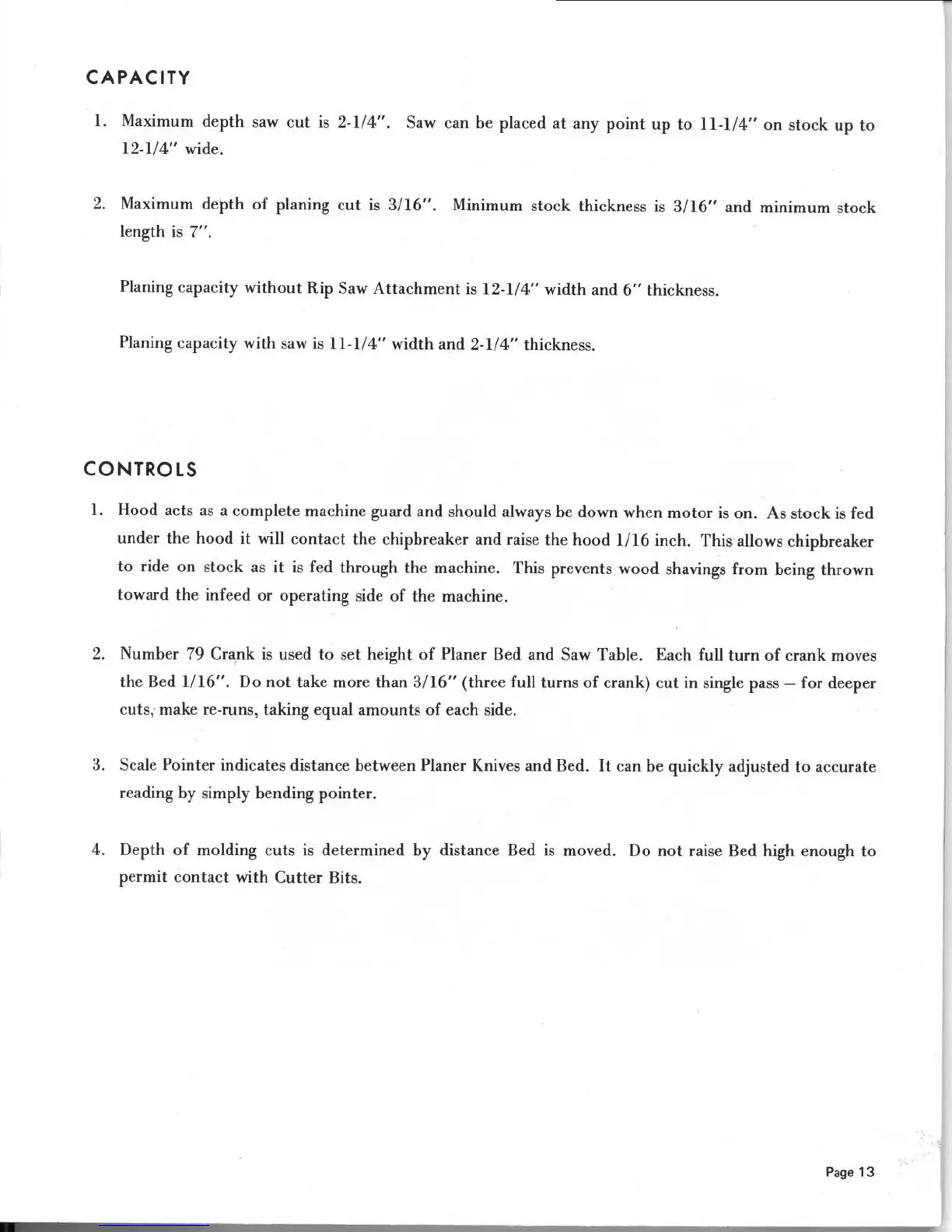 Belsaw 910 - Machine Capacity; Controls Overview; Using the Height Adjustment Crank; Understanding the Scale Pointer