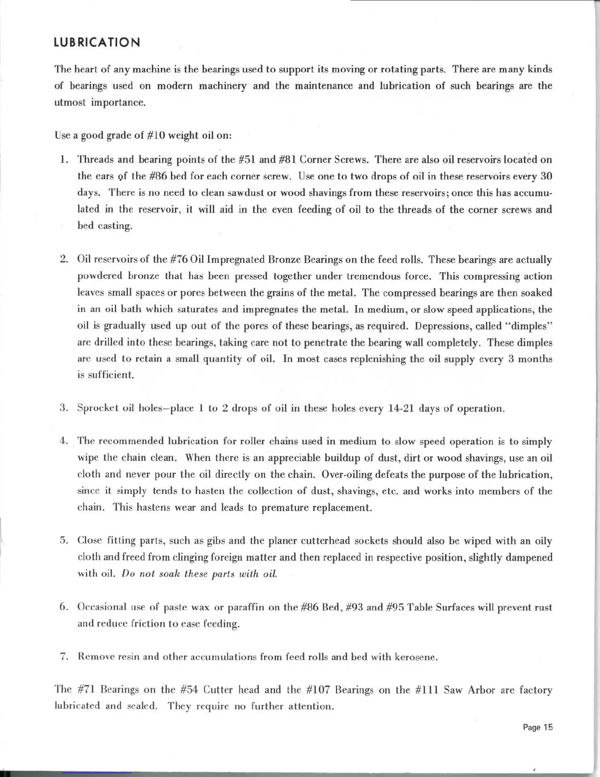 Belsaw 910 - Lubrication Guide; Bearing Lubrication Points; Chain and Roller Maintenance; Surface Protection