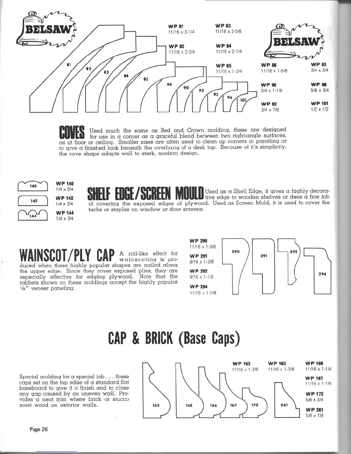 Belsaw 910 - Additional Molding Profiles; Coves, Shelf Edge, and Cap & Brick
