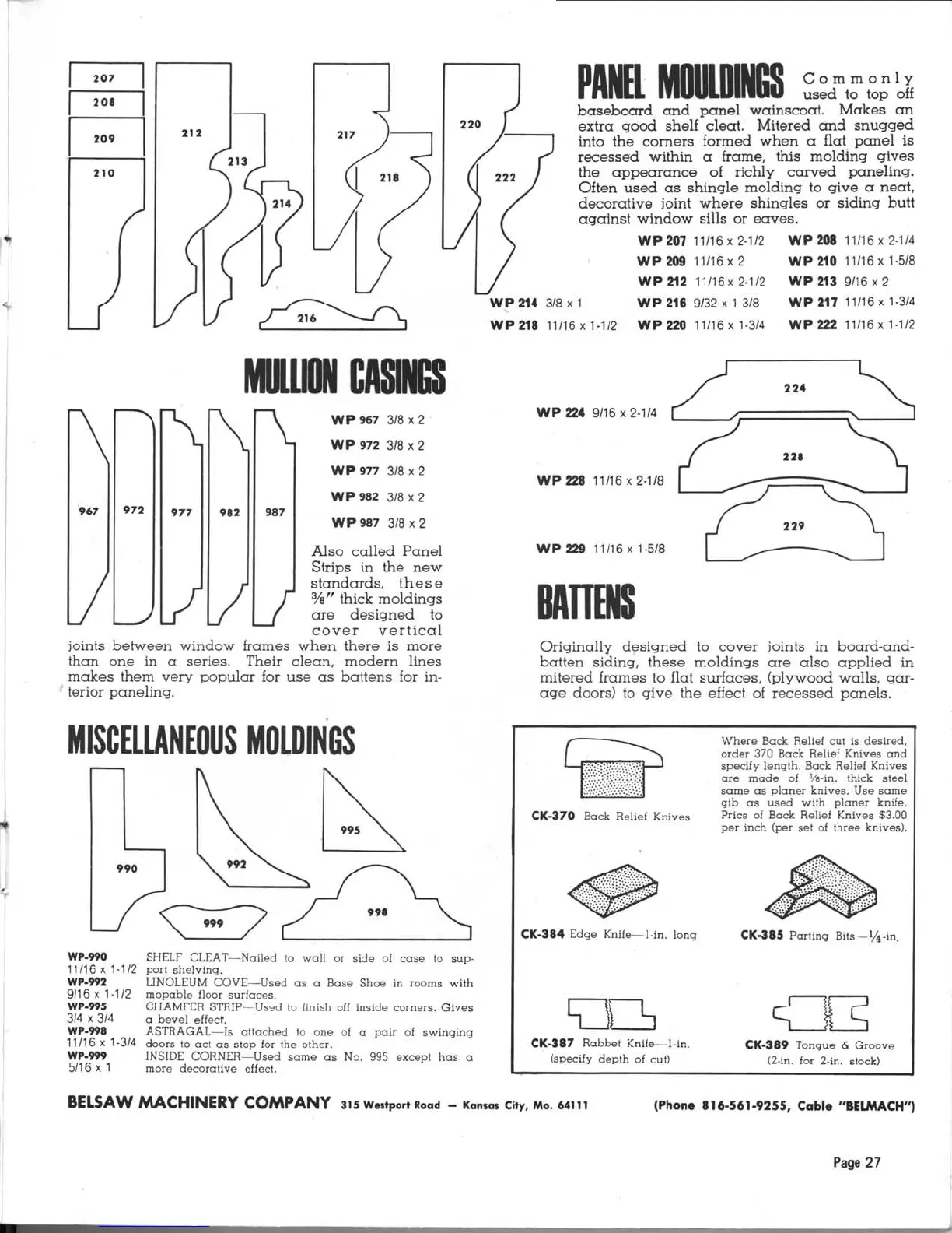 Belsaw 910 - Specialized Molding Profiles; Panel and Mullion Moldings; Miscellaneous Moldings and Battens