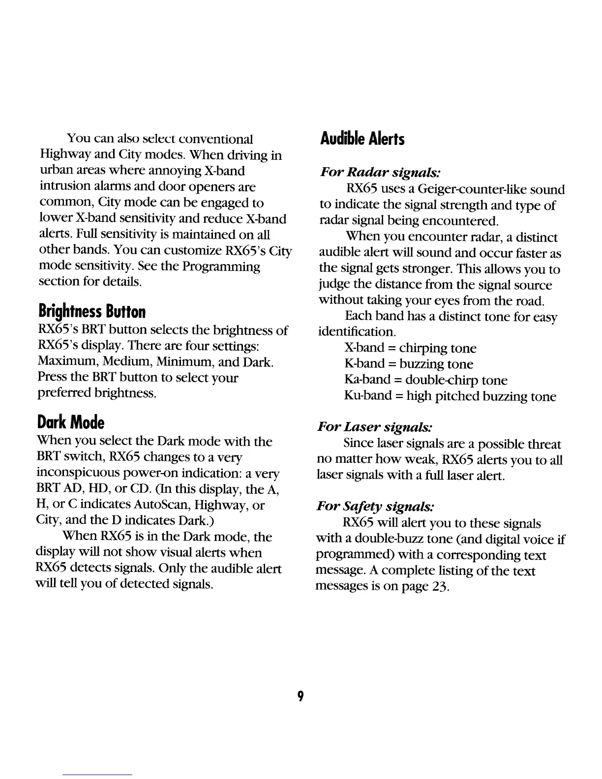 detects signals. Only the audible alert