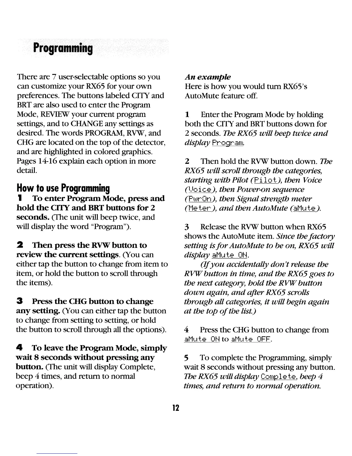 The RX65 will display Complet.e, beep 4