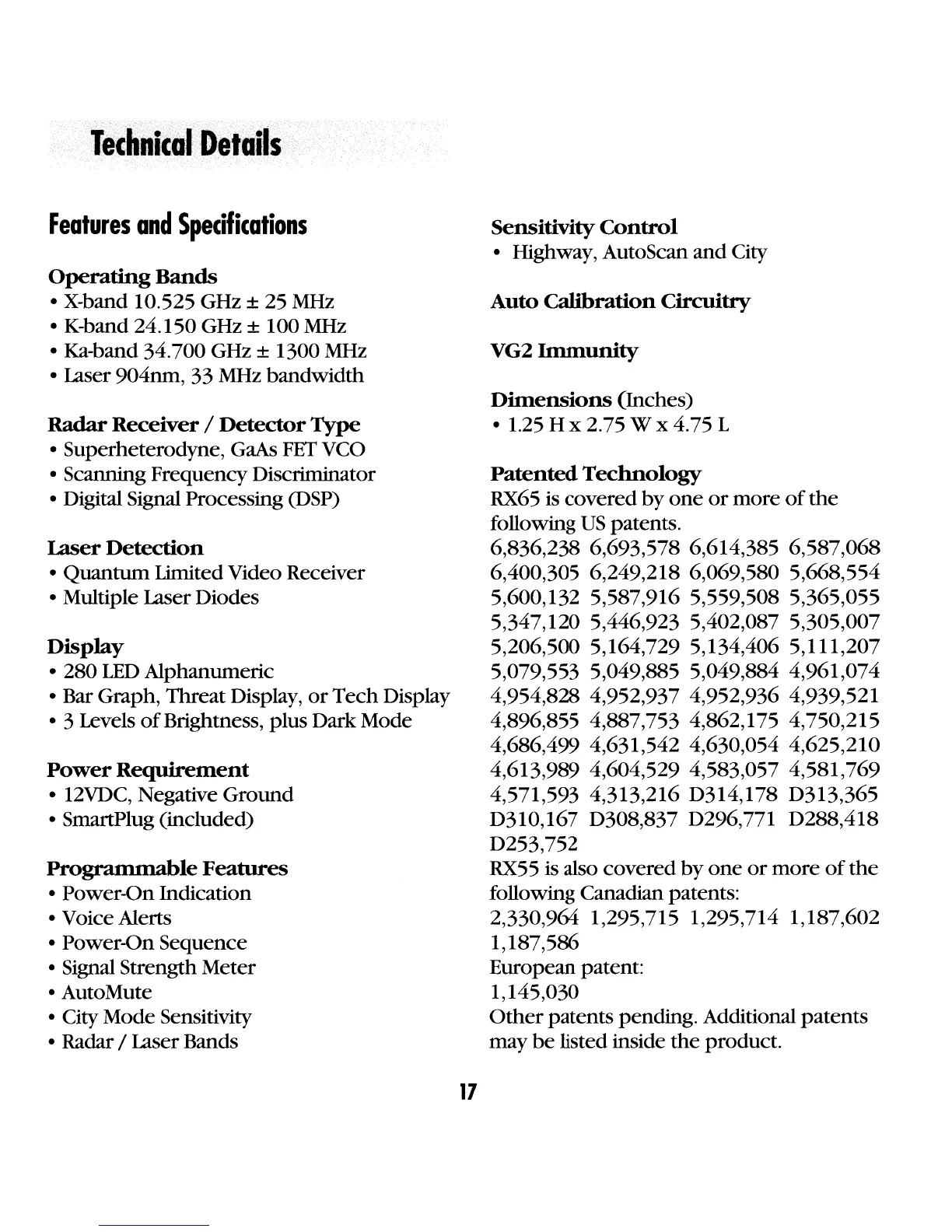 • Radar / Laser Bands