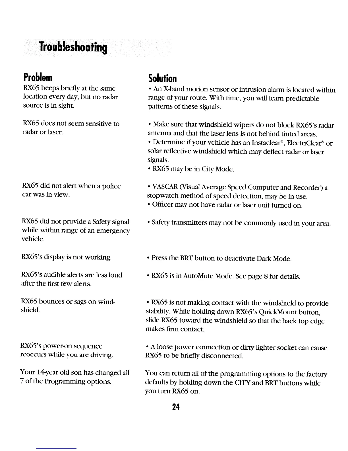 • RX65 is in AutoMute Mode. See page 8 for details.