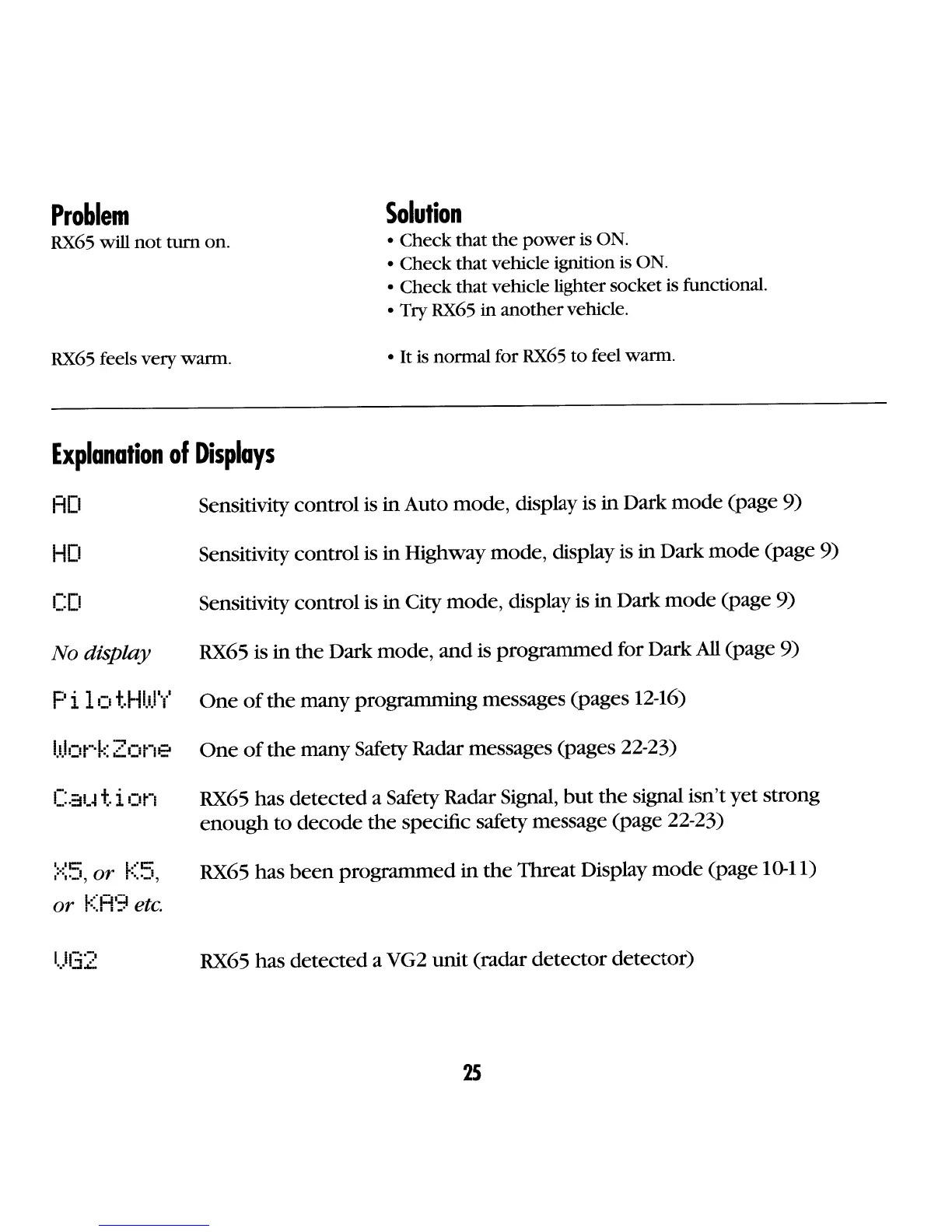 many Safety Radar messages (pages 22-23)