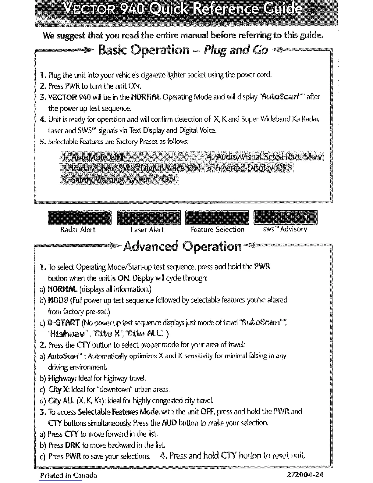 940 will be in the ~#~~~~~ Opemting Mode and will dhplay “
