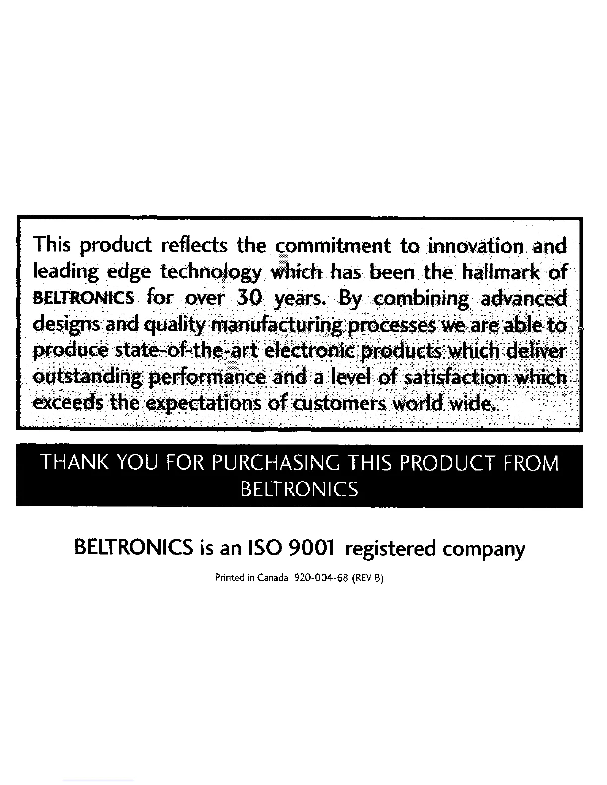 BELTRONICS is an IS0 9001 registered company