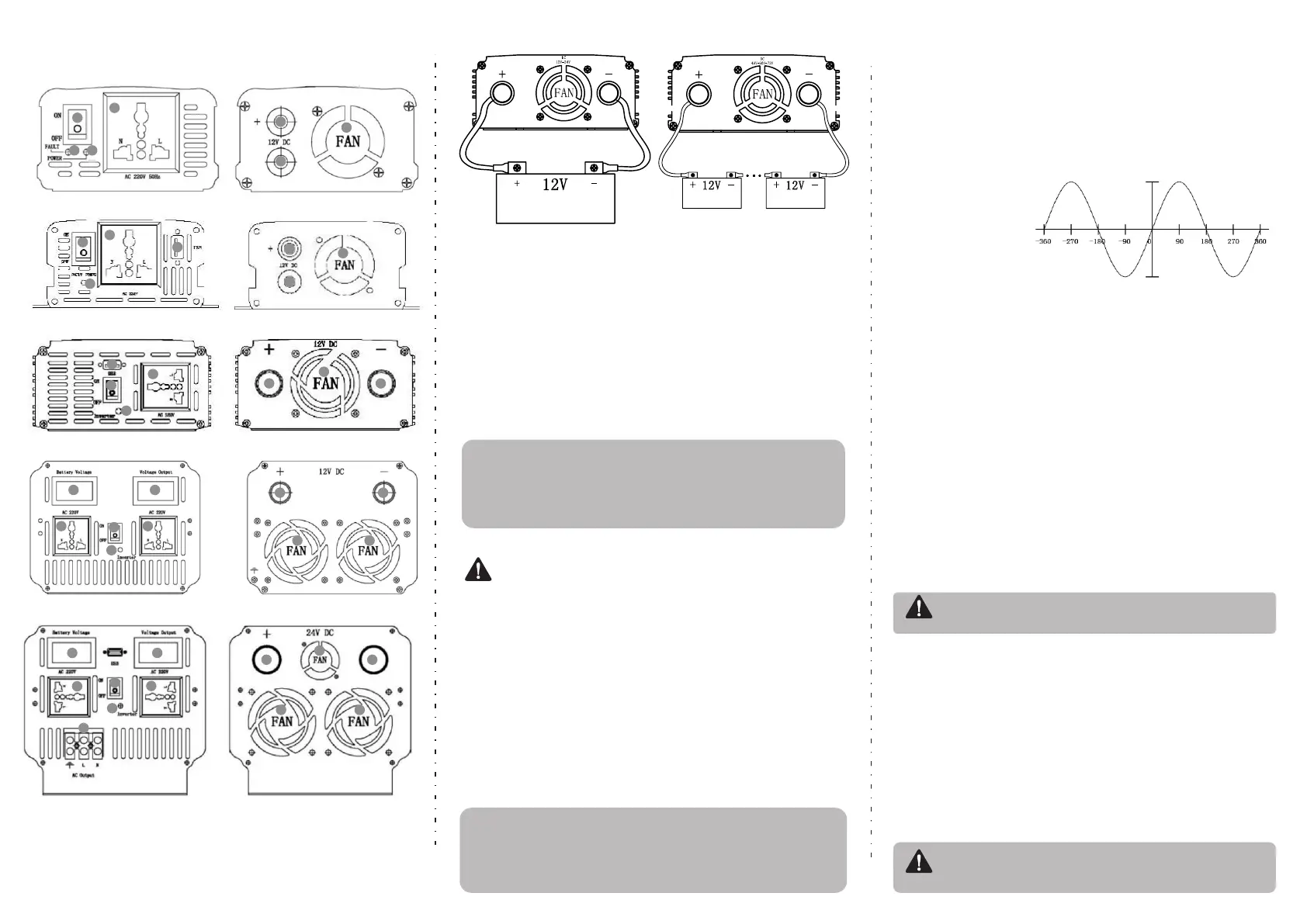 3.Inverter must be connected to the same nominal voltage of the batter y, 12V inverter