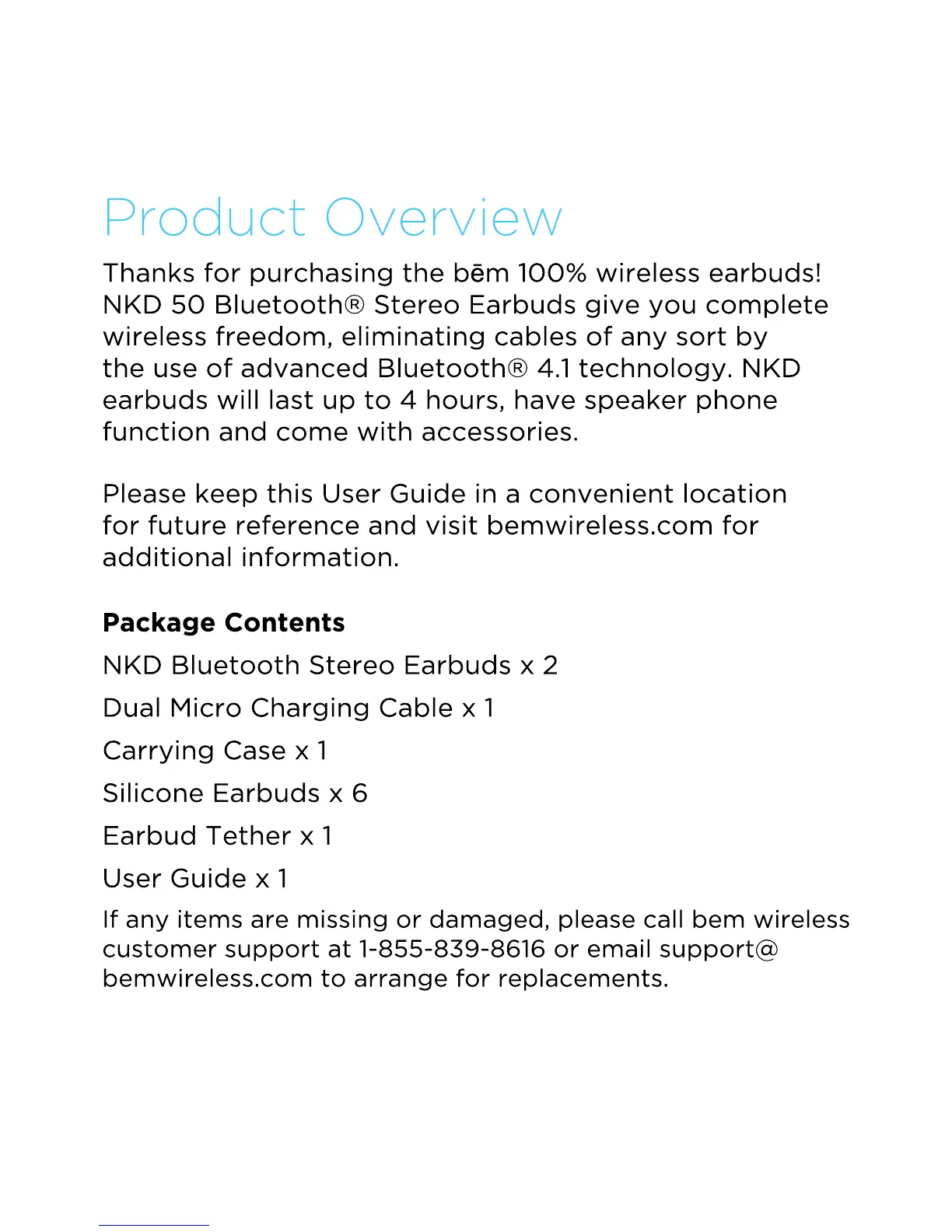 bem wireless NKD-50 - Product Overview; Package Contents