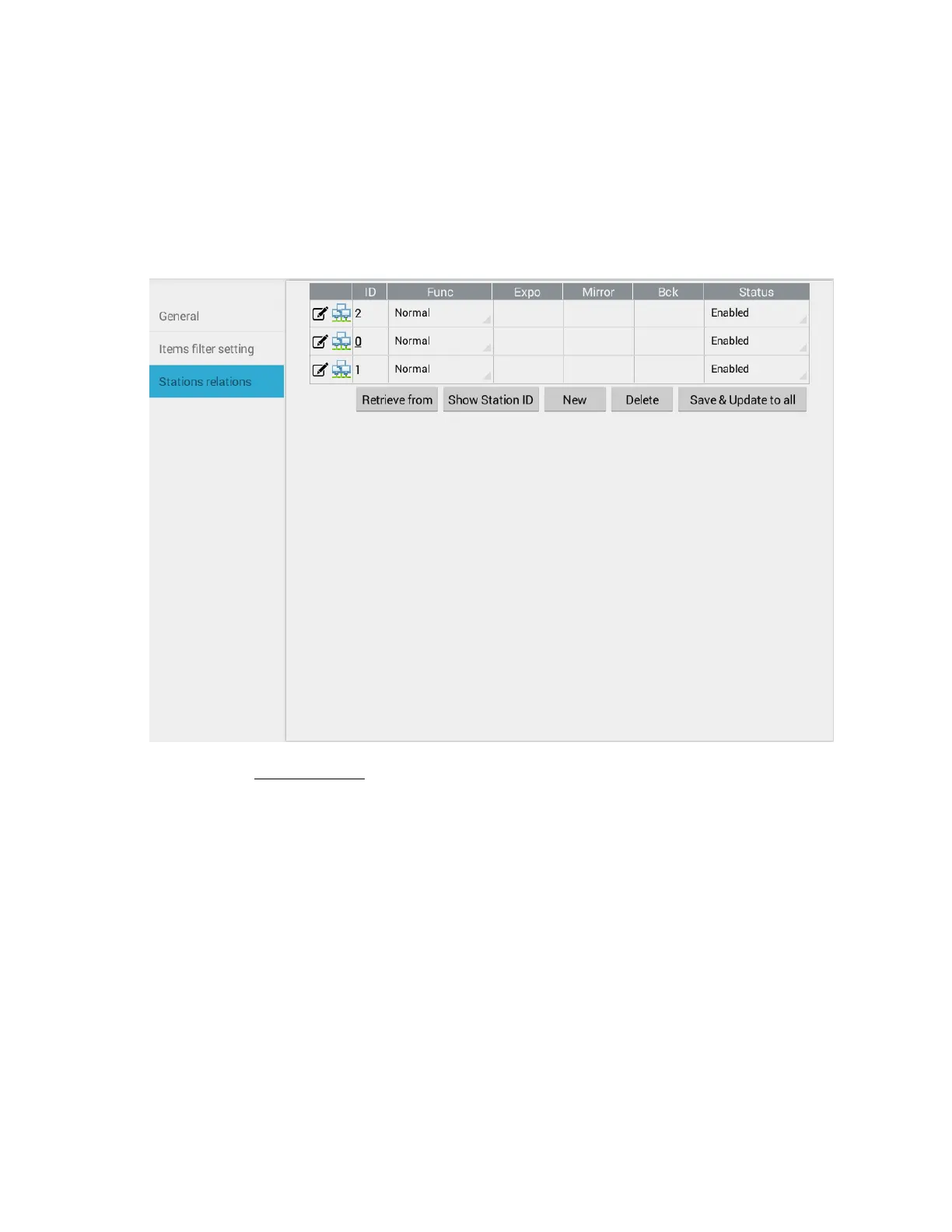 "Save&Update to all" to update the relation table to all stations, please make sure all stations are
