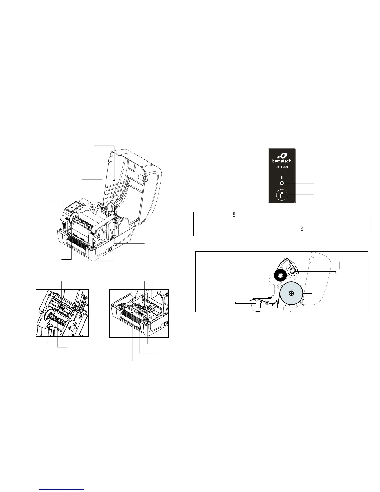 La impresora de etiquetas LB-1000 tiene un botón de alimentación y un LED de diferentes colores para indicar su estado.