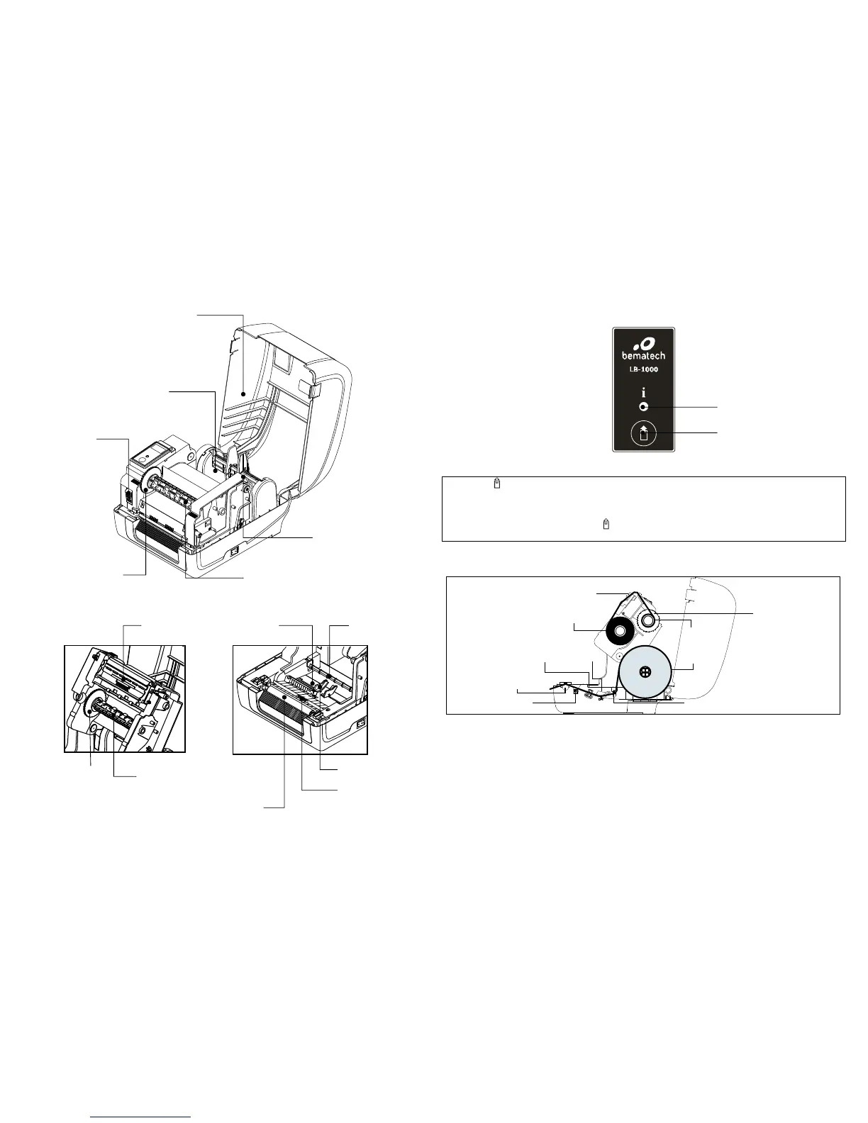 A impressora LB-1000 possui uma Tecla de avanço e um LED colorido para indicação de status.