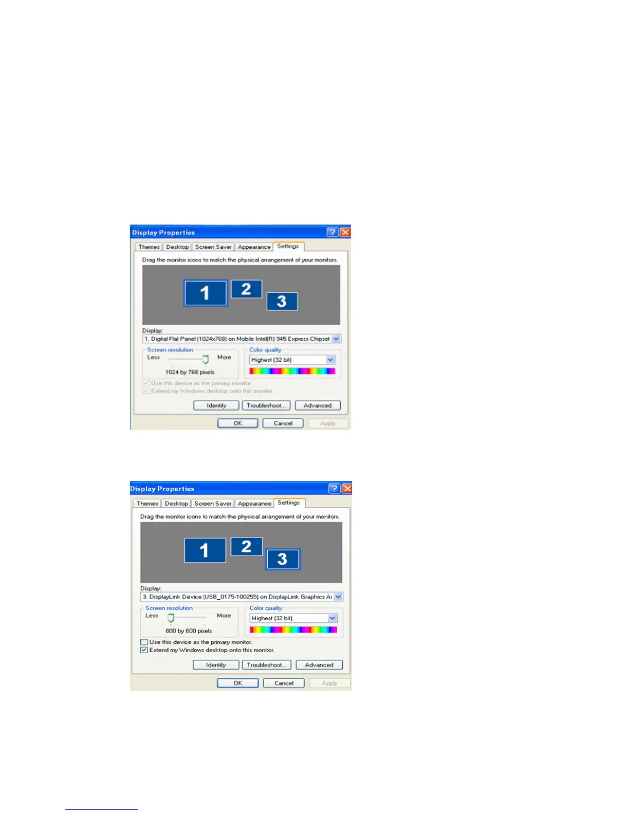 c. Arrange the monitors displayed in the 'Display Properties' window in the order