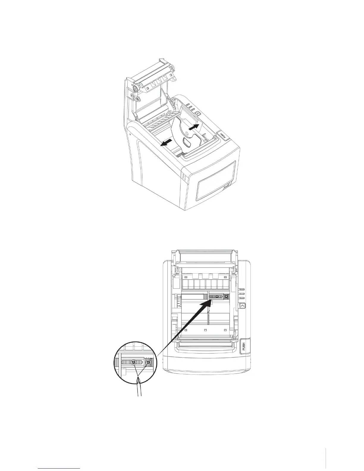 1. Ajuste a guia de papel para adaptá-la à largura do papel de acordo com a indicação das setas.
