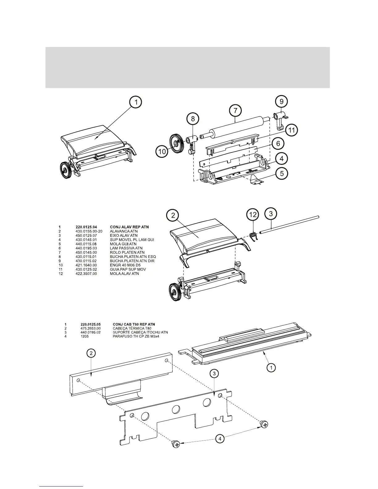 Bematech MP-4000 TH - Exploded View of the Cover Lever Set; Exploded View of the Thermal Print Head Set