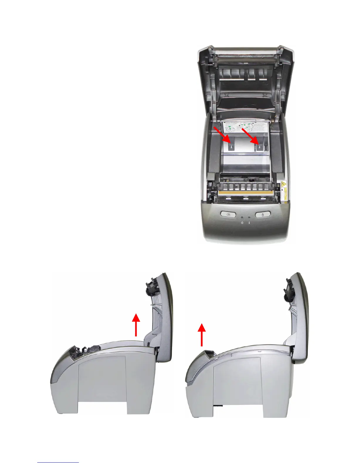To access the printer interior, the cutter