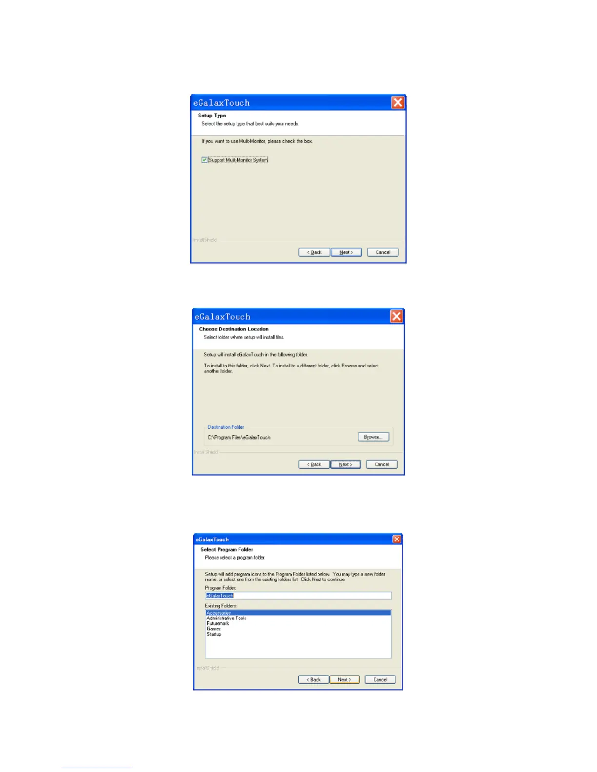 “C:\Program Files\eGalaxtouch”. Click [Next] to continue installation.