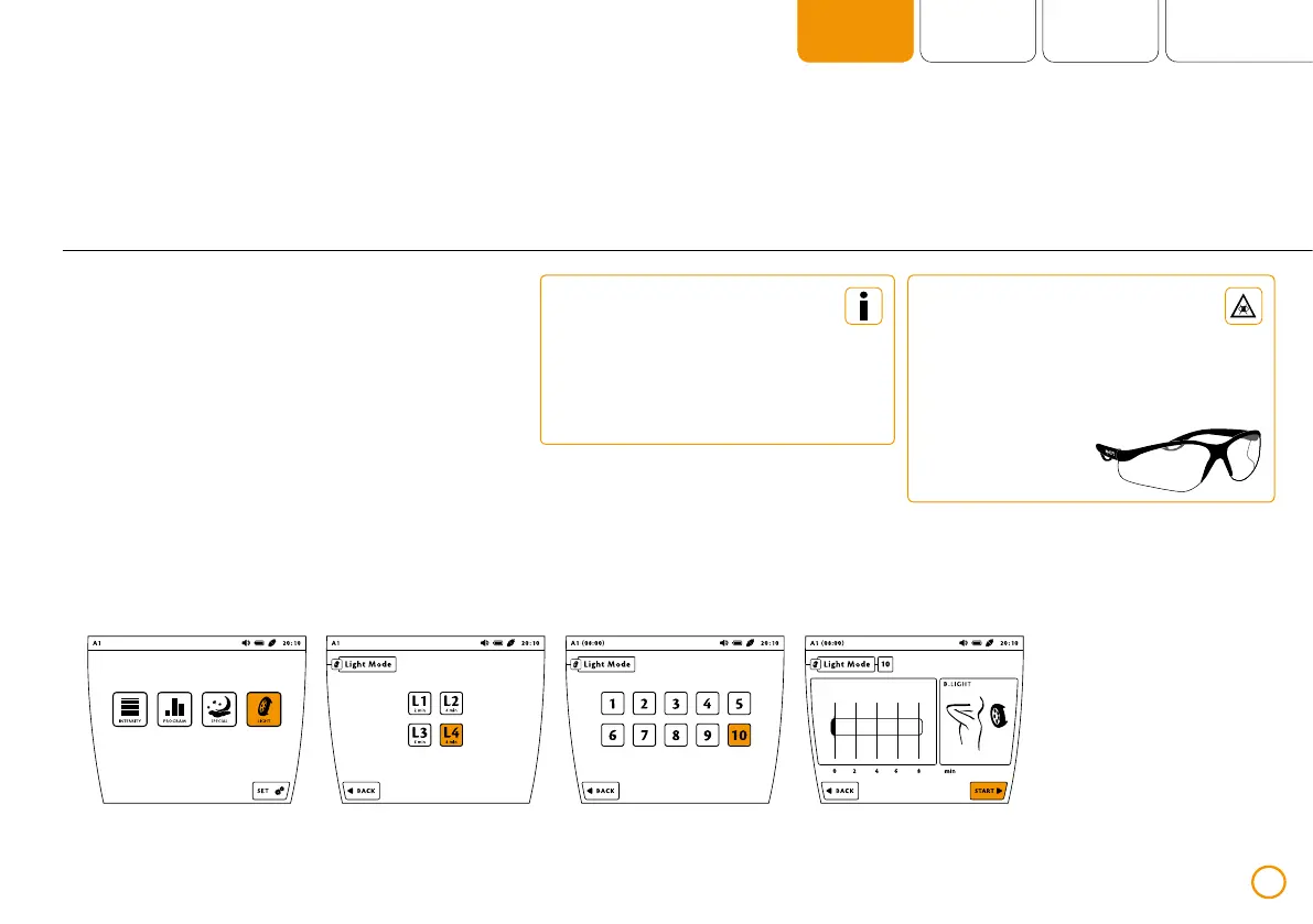 Példa – Fénykezelés (a B.LIGHT kezelőegység az A2 porthoz van csatlakoztatva, időtartam: 8 perc)