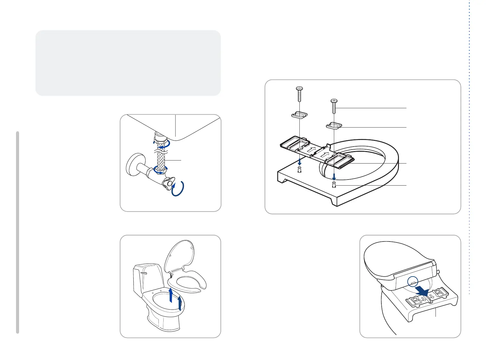 Inserte los anclajes de montaje superior en los orificios de los pernos del sanitario.
