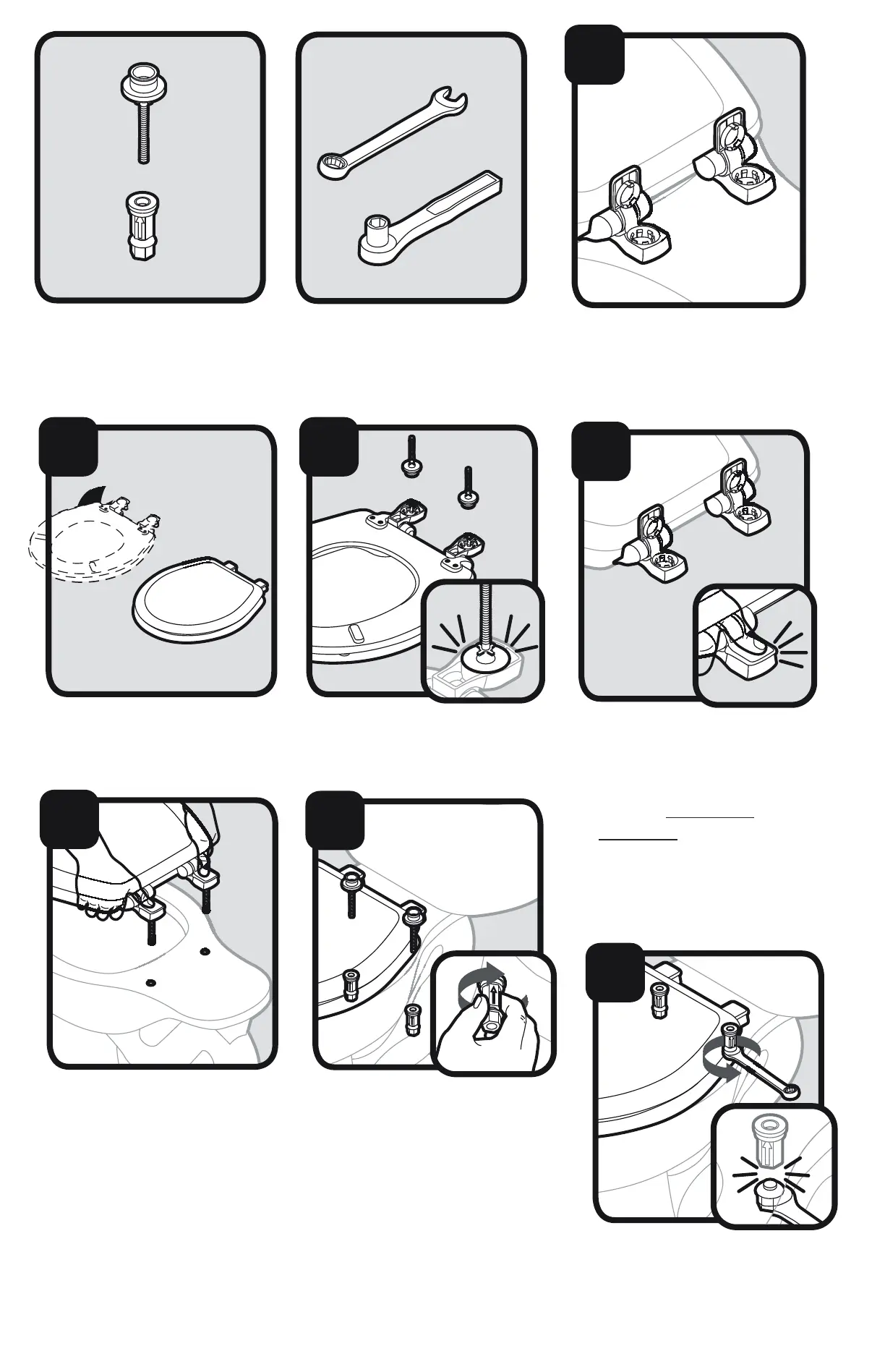 BEMIS NextStep - Mayfair Seat Installation Steps; Insert Bolts into Bowl; Attach Nuts and Tighten; Final Tightening of Nuts