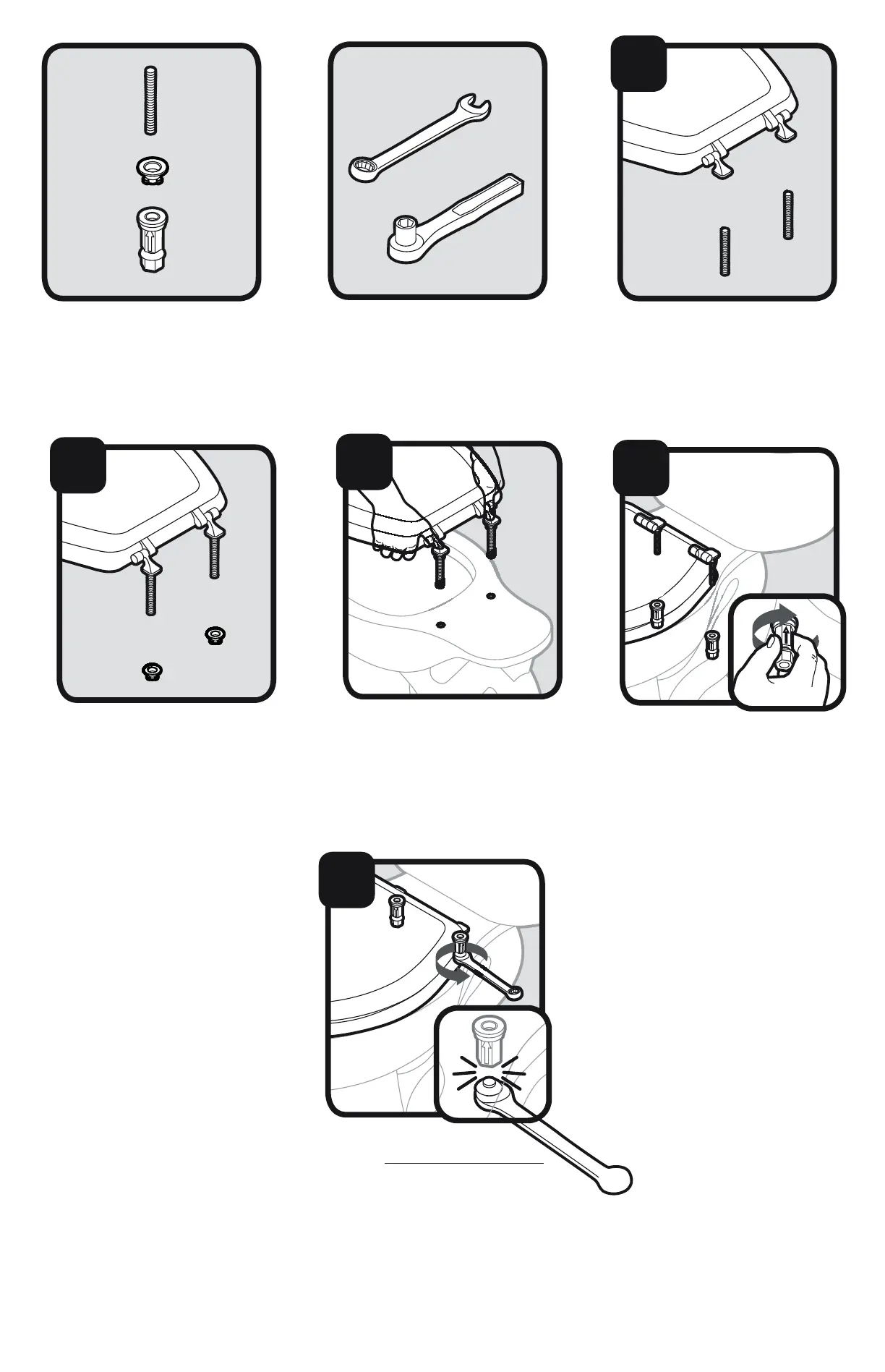 BEMIS NextStep - Universal Seat Mounting; Thread Bolt into Hinge; Attach and Finger-Tighten Nuts; Secure STA-TITE Nuts