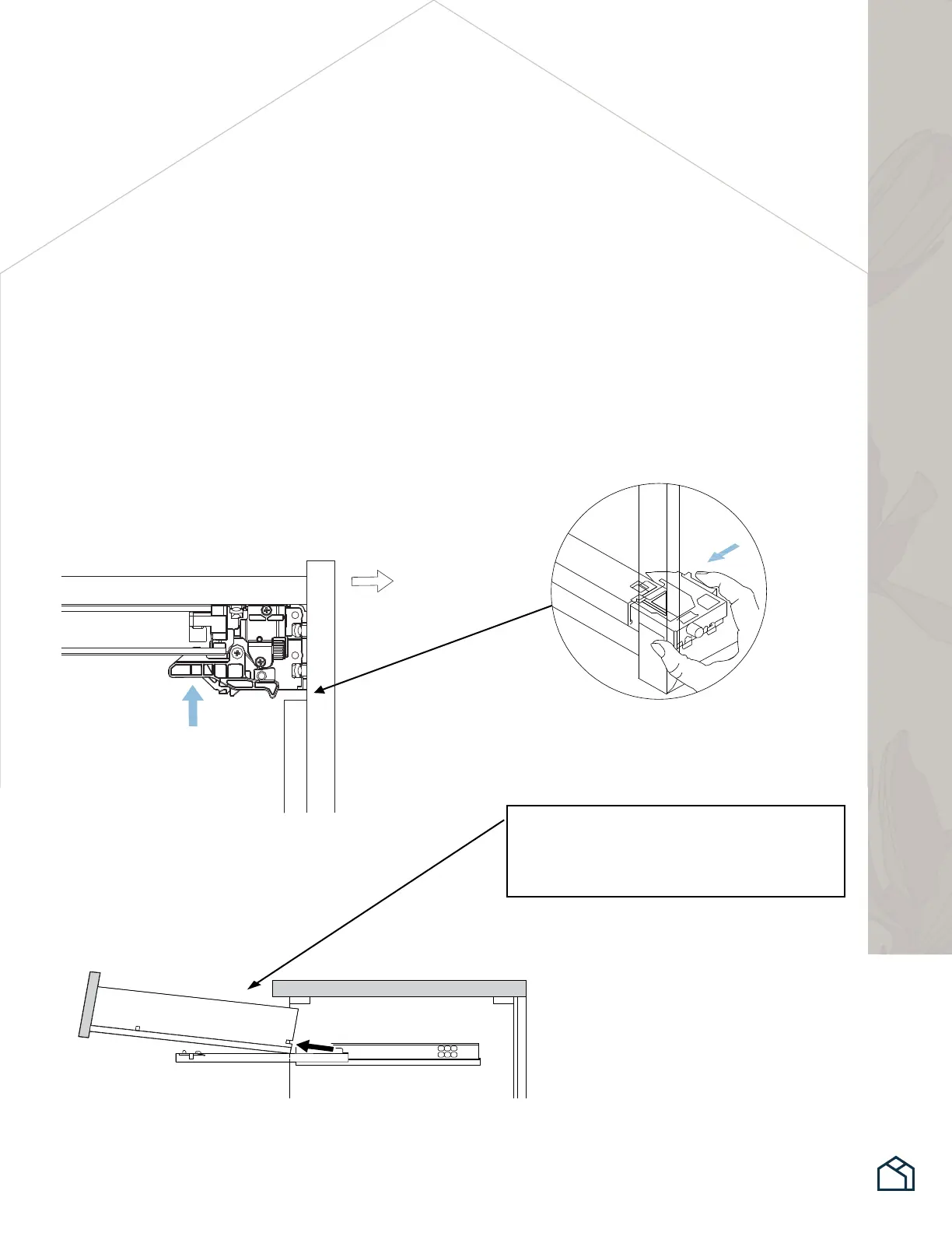 1. Localice el bloqueo deslizante colocado en la parte inferior del cajón