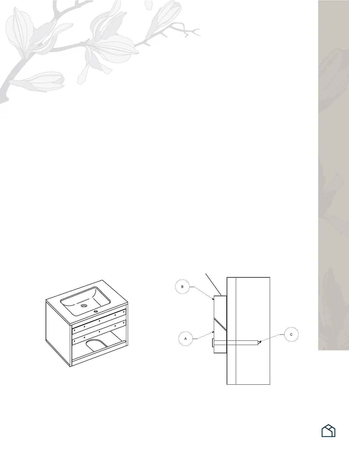 1. With two adults, carefully lift vanity onto the wall cleats, mating