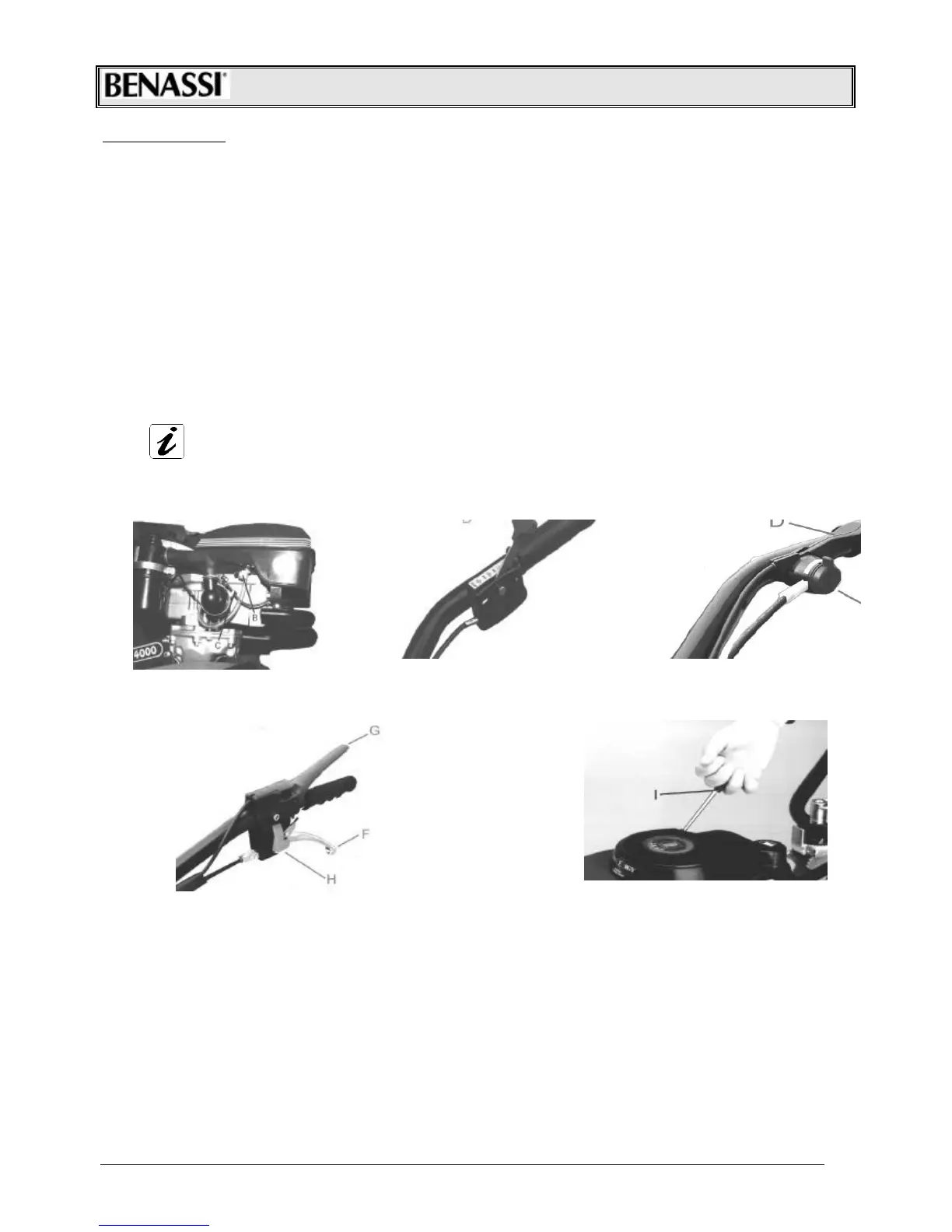 slowly and always keep the "motor stop" lever pushed Fig. 5Rif.”G” increase the r.p.m. with the accelerator hand lever.