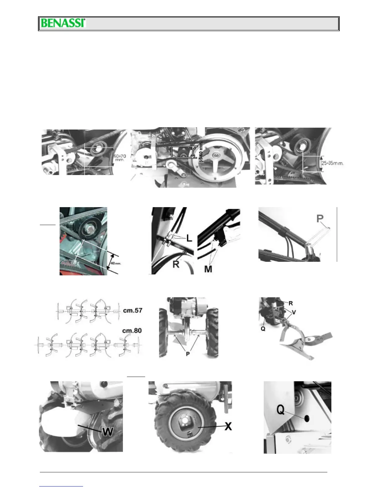 transport wheel support (ref “W” pict.19), using two bolts. You have also to assemble two ballasts on the wheels (ref. “X pict.