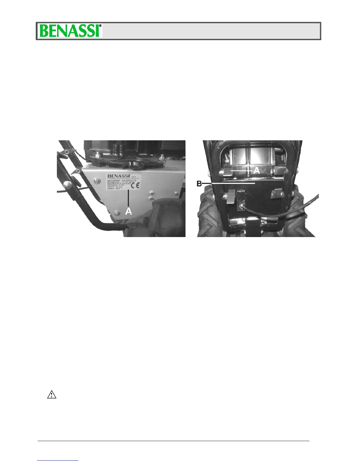 For machine identification (serial number, motor, weight, power) read the data plate as shown in the photo. See Fig. 1, Ref. "A".