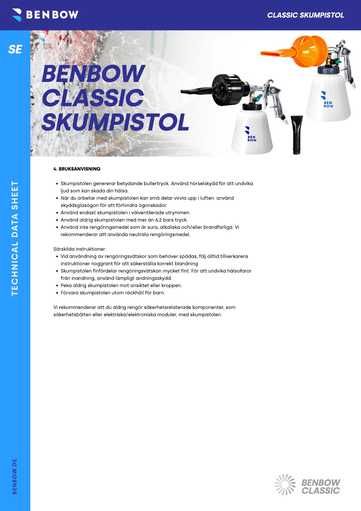 Skumpistolen genererar betydande bullertryck. Använd hörselskydd för att undvika