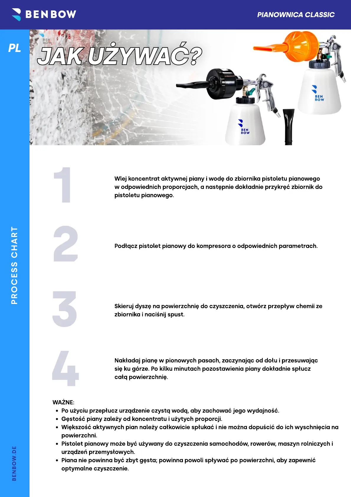 Pistolet pianowy może być używany do czyszczenia samochodów, rowerów, maszyn rolniczych i