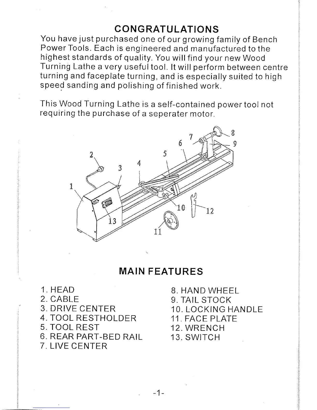 Bench Power Tools ML10001 - Product Overview; Key Features