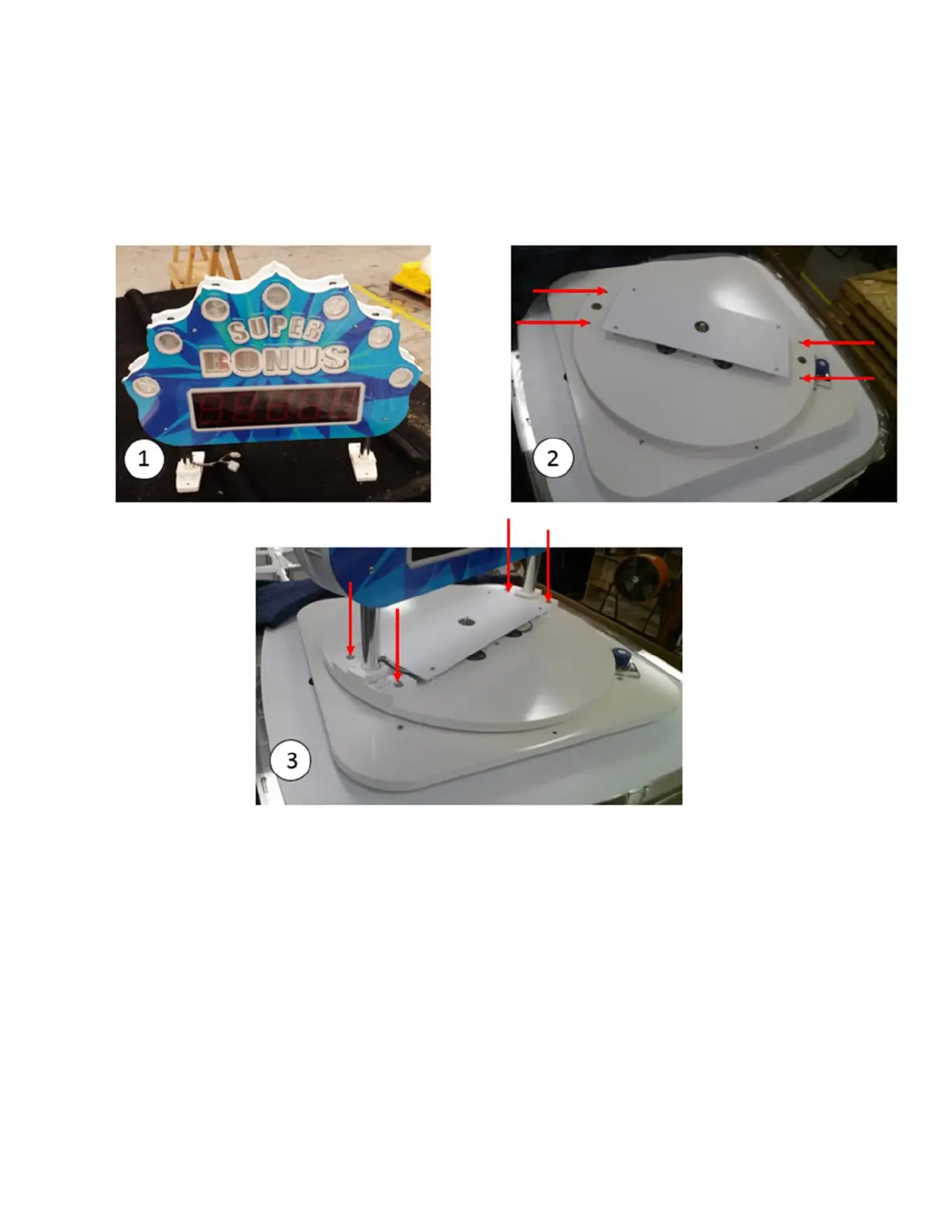 3. Attach the marquee using the four supplies screws and connect the marquee harness to the main