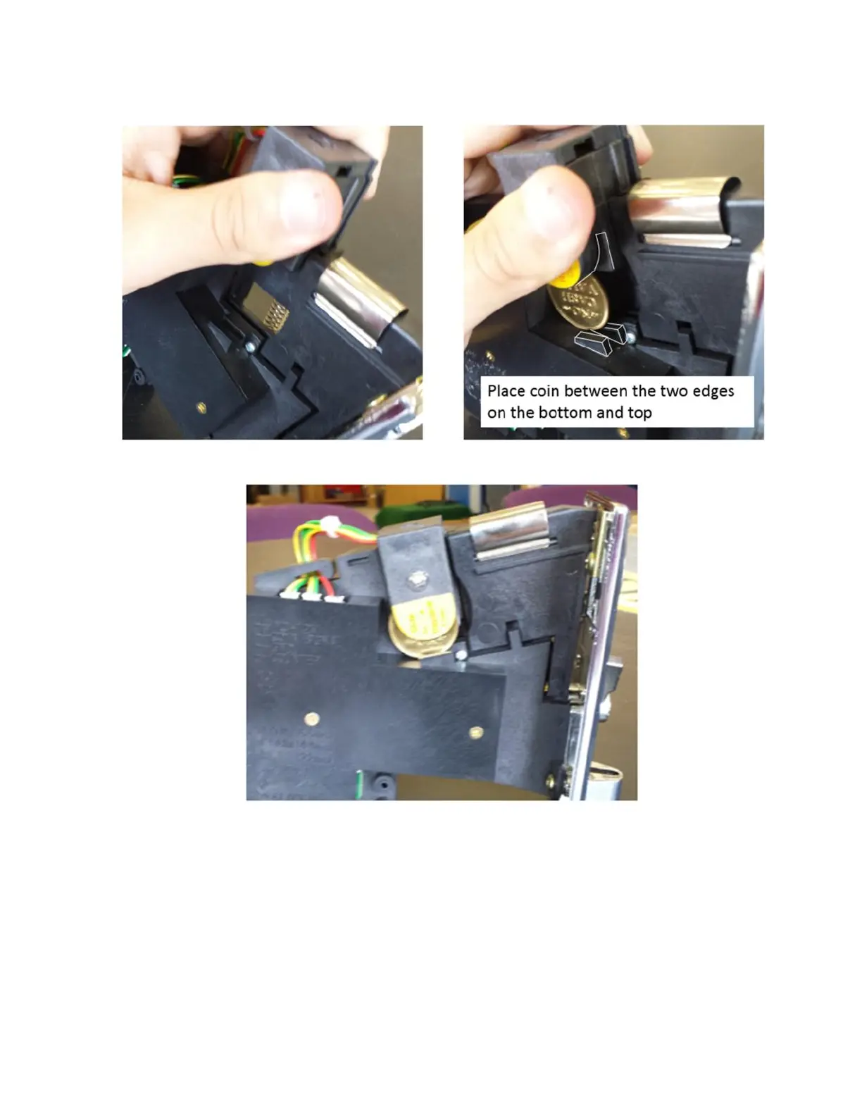 - Reattach the Coin Mech to the button assembly by screwing the lock nuts onto the four carriage bolts,