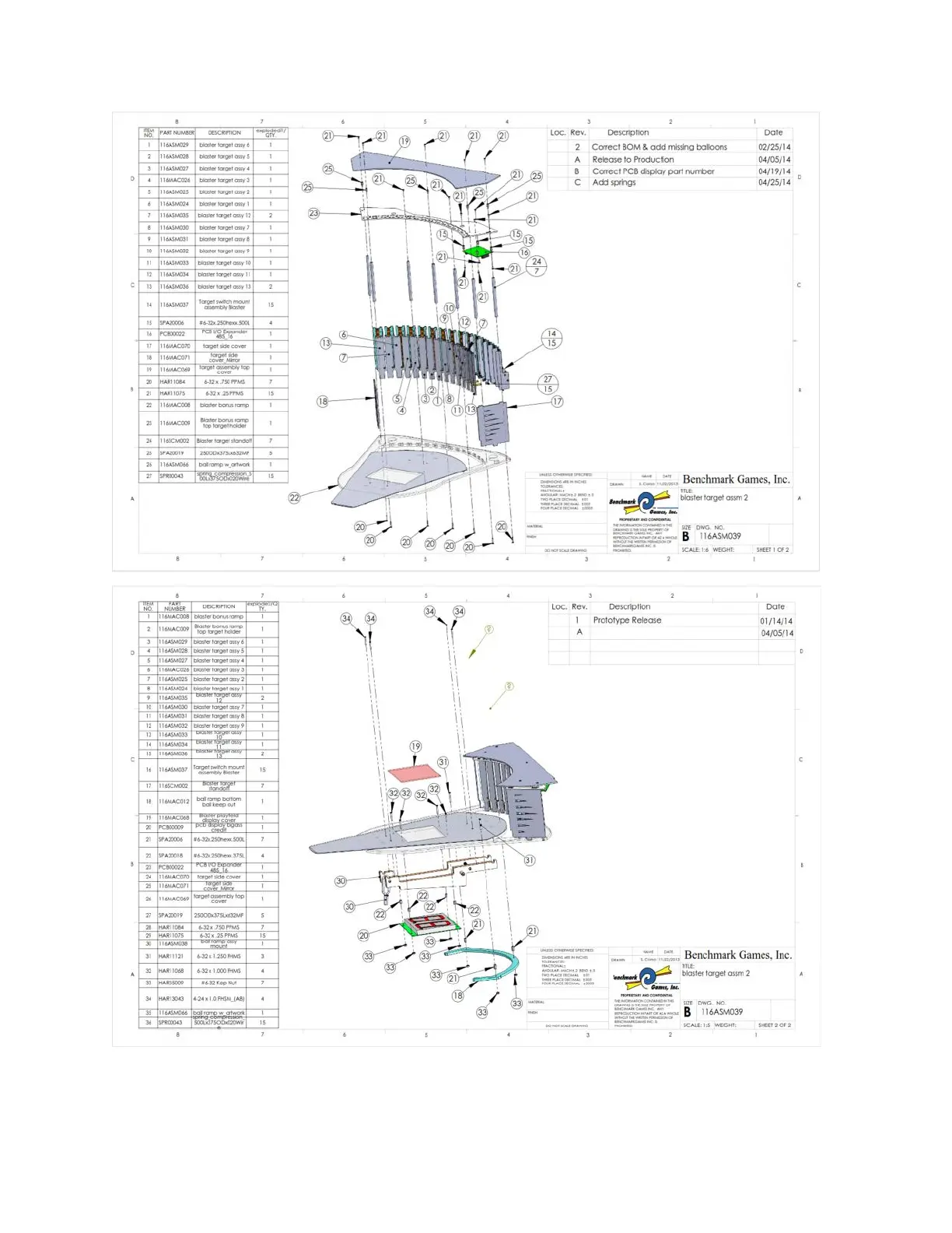 Benchmark Games BLASTER - Target Assembly Diagram; Playfield Assembly Diagram