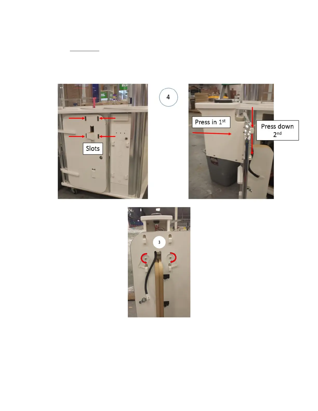 - Take button assembly, with coin mech included, placing the hooks in the slots shown in ④ and