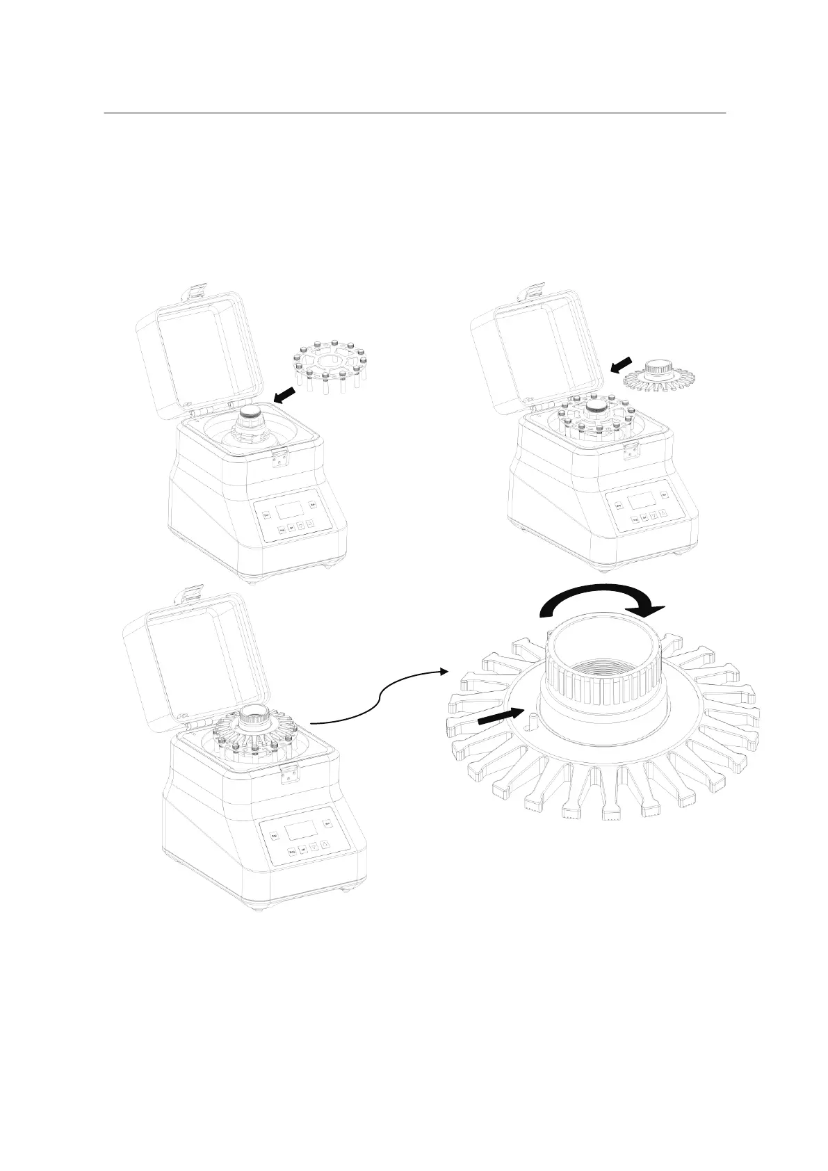 1.3 Place tube retainer on top of the tube holder. Tighten the knob clockwise and push the