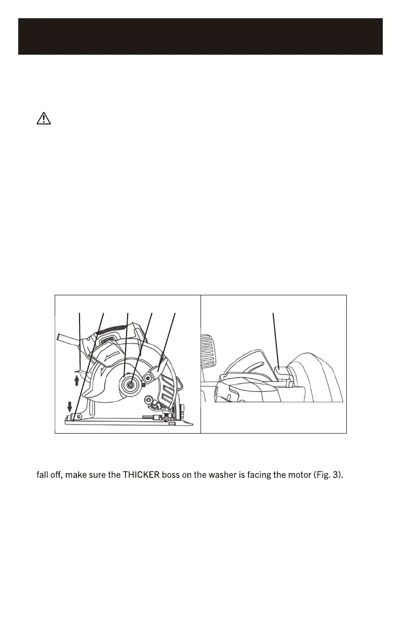 NOTE: Make sure the blade teeth are pointing toward the front of the saw.