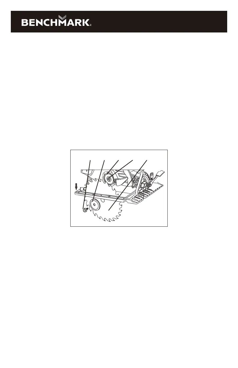 e) Before turning the saw ON, carefully rotate the blade by hand to make sure it