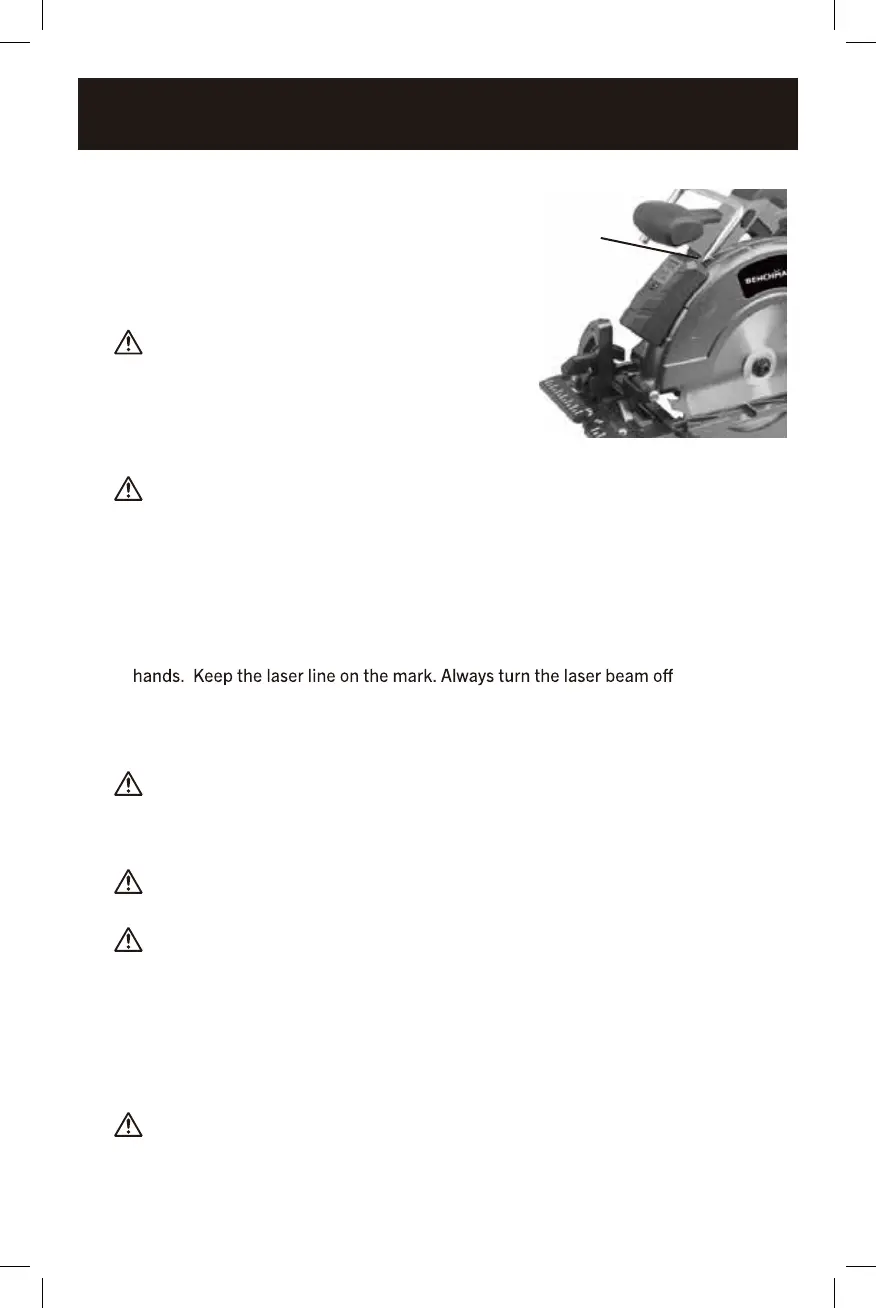 THE LASER BEAM ON WHEN THE SAW IS ON THE WORKPIECE.