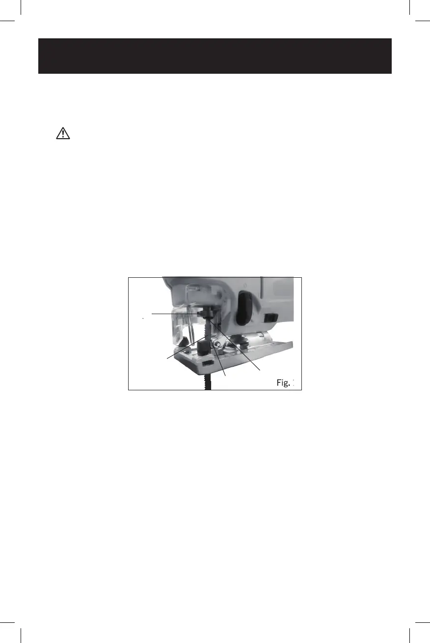 1. To install a blade in the jig saw, push upward on the blade locking lever (1) (Fig. 1).