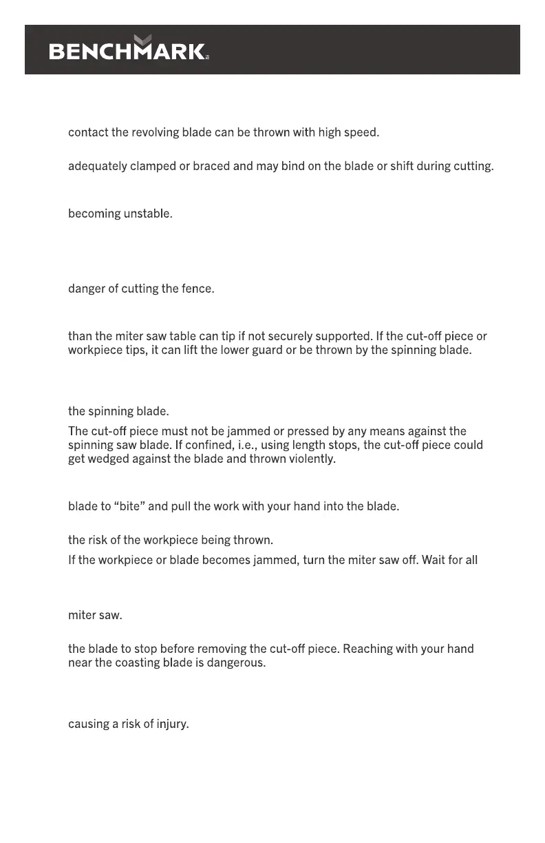 before use. A level and firm work surface reduces the risk of the miter saw